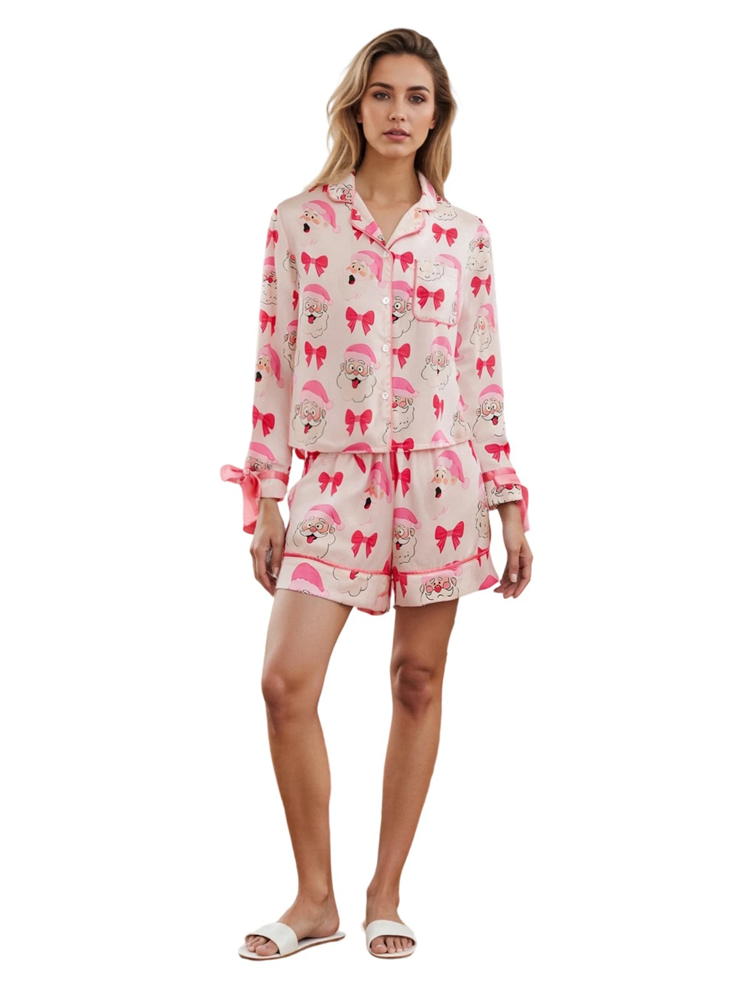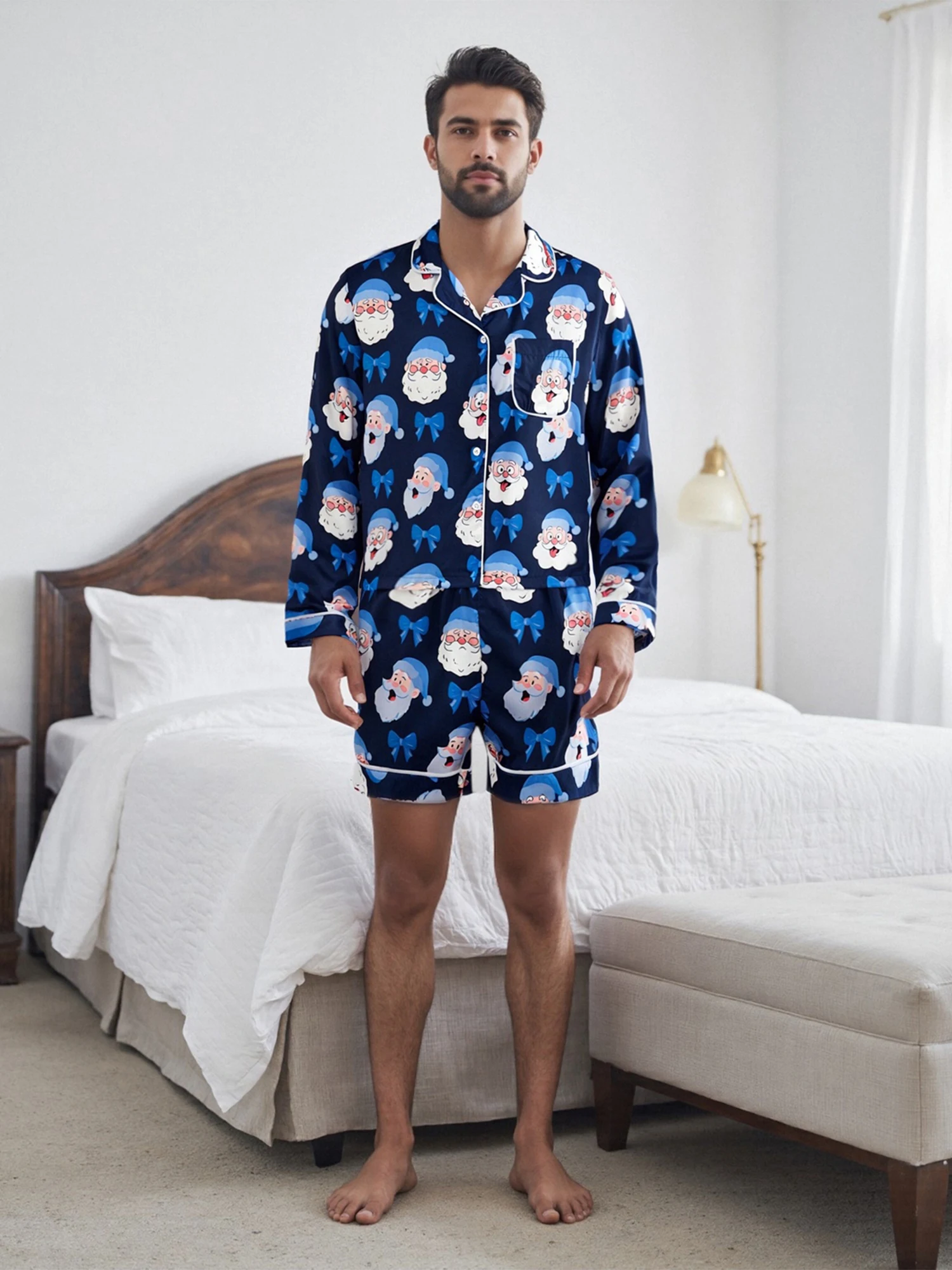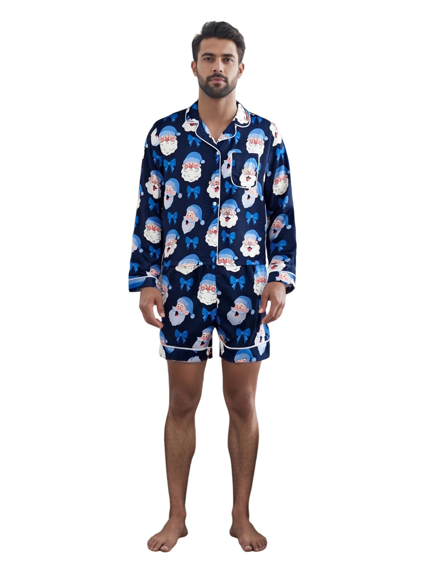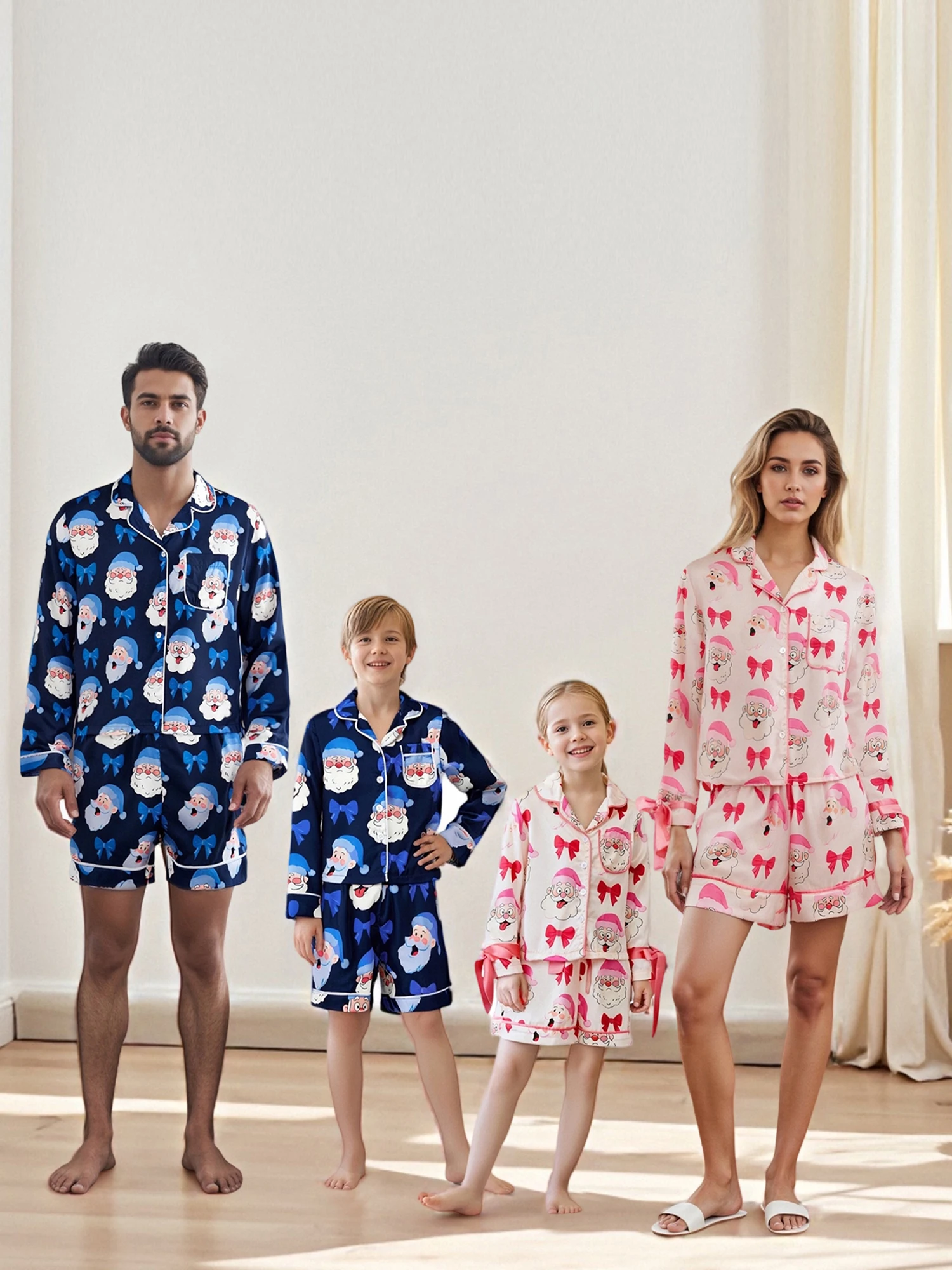Christmas Family Pajamas Matching Set with Santa Claus Print, perfect for parent-child or couple coordination. Made from 100% recycled cellulose fiber, these unisex pajamas are designed for comfort and style during the autumn season. The set includes one short-sleeve top and one pair of shorts, featuring a cute Santa Claus pattern, pullover closure, and standard thickness, true to size fit, and crafted from non-woven material. Ideal for babies (age 0-1Y), boys and girls (2T-13T), women (S-3XL), and men (S-3XL). Sizes are available in both cm and inches for precise fitting; please check the measurement chart before purchasing. The pajamas come from the brand AXYRXWR, made in Guangdong, China, and are free from high-concern chemicals. Whether for family Christmas photos, holiday celebrations, or cozy nights at home, these pajamas provide warmth, cuteness, and matching fun for everyone.
