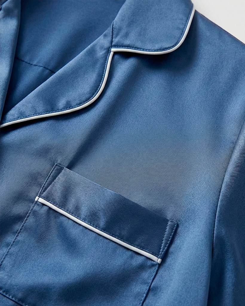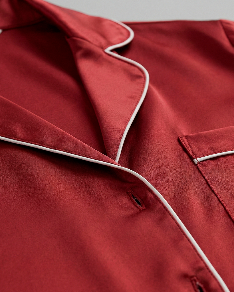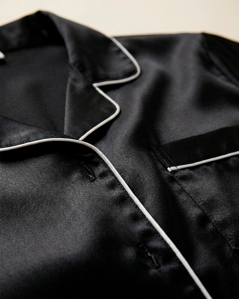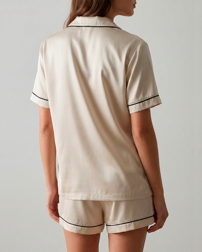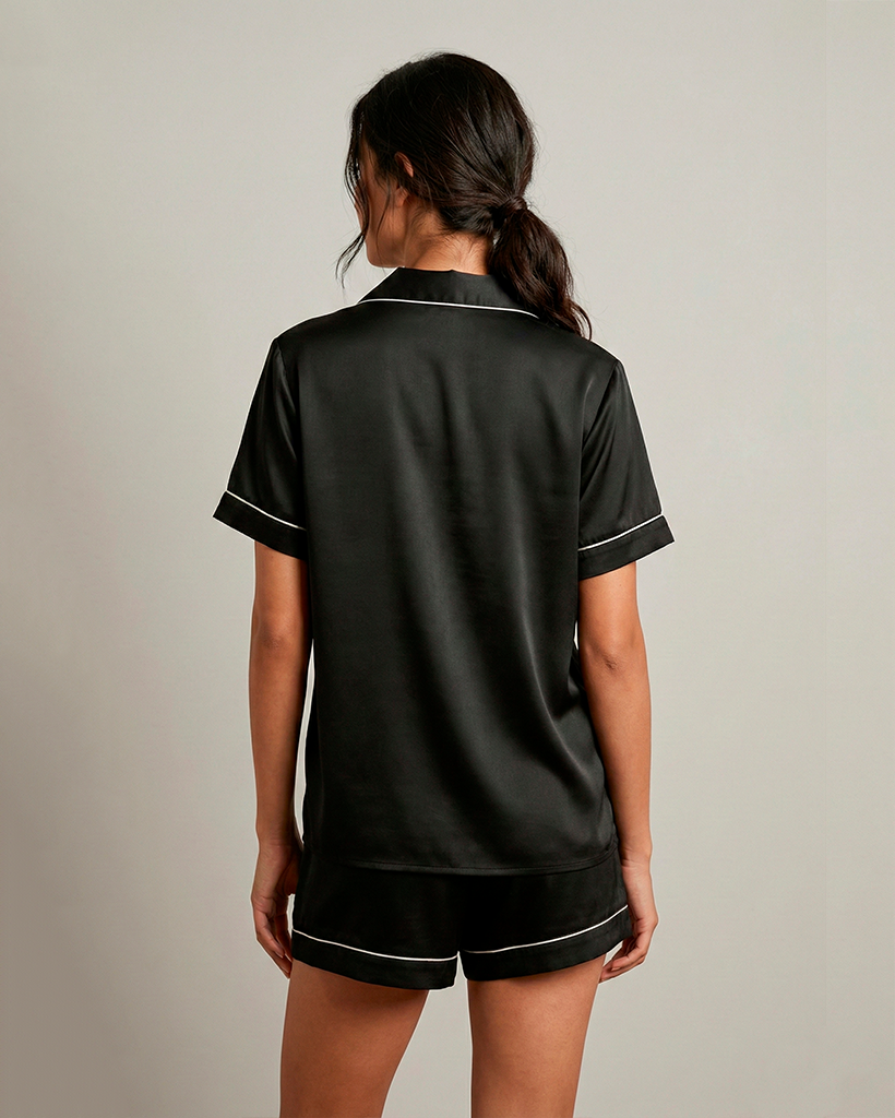 Bring a touch of elegance to your night-time routine with this satin pyjama short set from Zzzoria. Designed in a silky-smooth fabric made from 95% polyester and 5% elastane, it feels luxuriously soft on the skin while allowing easy movement. The classic short-sleeved button-up top with a smart lapel collar pairs perfectly with the relaxed-fit shorts, finished with contrast piping for a timeless look. Lightweight and breathable, this versatile set is perfect for warm summer nights, lounging at home, or slipping into something chic after a long day.